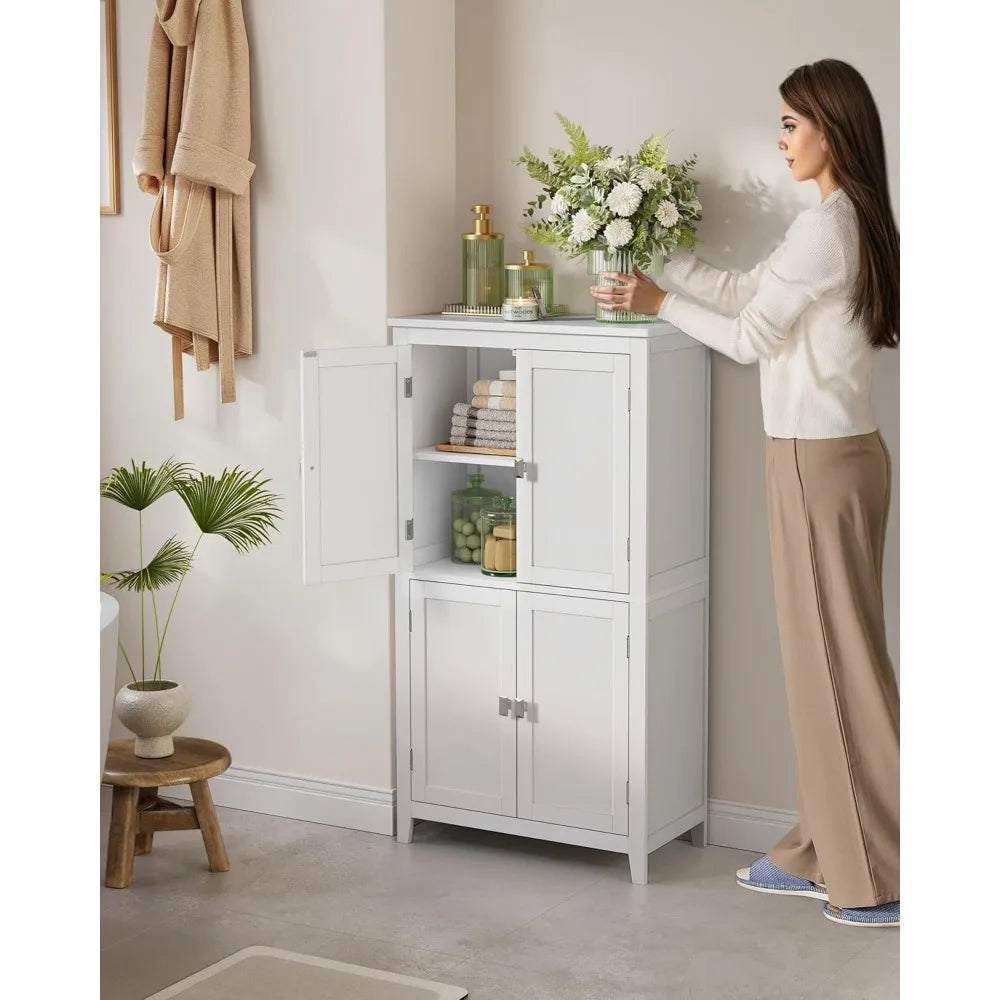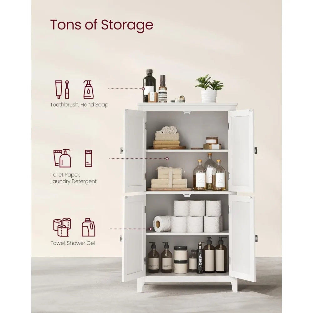 Freestanding Bathroom Storage Cabinet – 4-Door Floor Cabinet with Adjustable Shelves