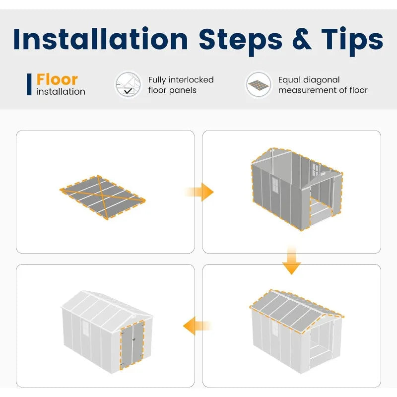 Spacious Interior: 8 x 10 FT design provides generous storage capacity for large tools and outdoor gear.