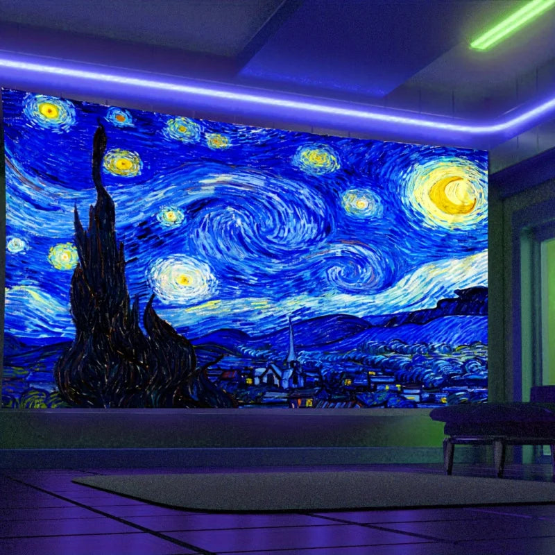 Van Gogh Inspired Design: Captures the iconic Starry Night with glowing fluorescent effects.